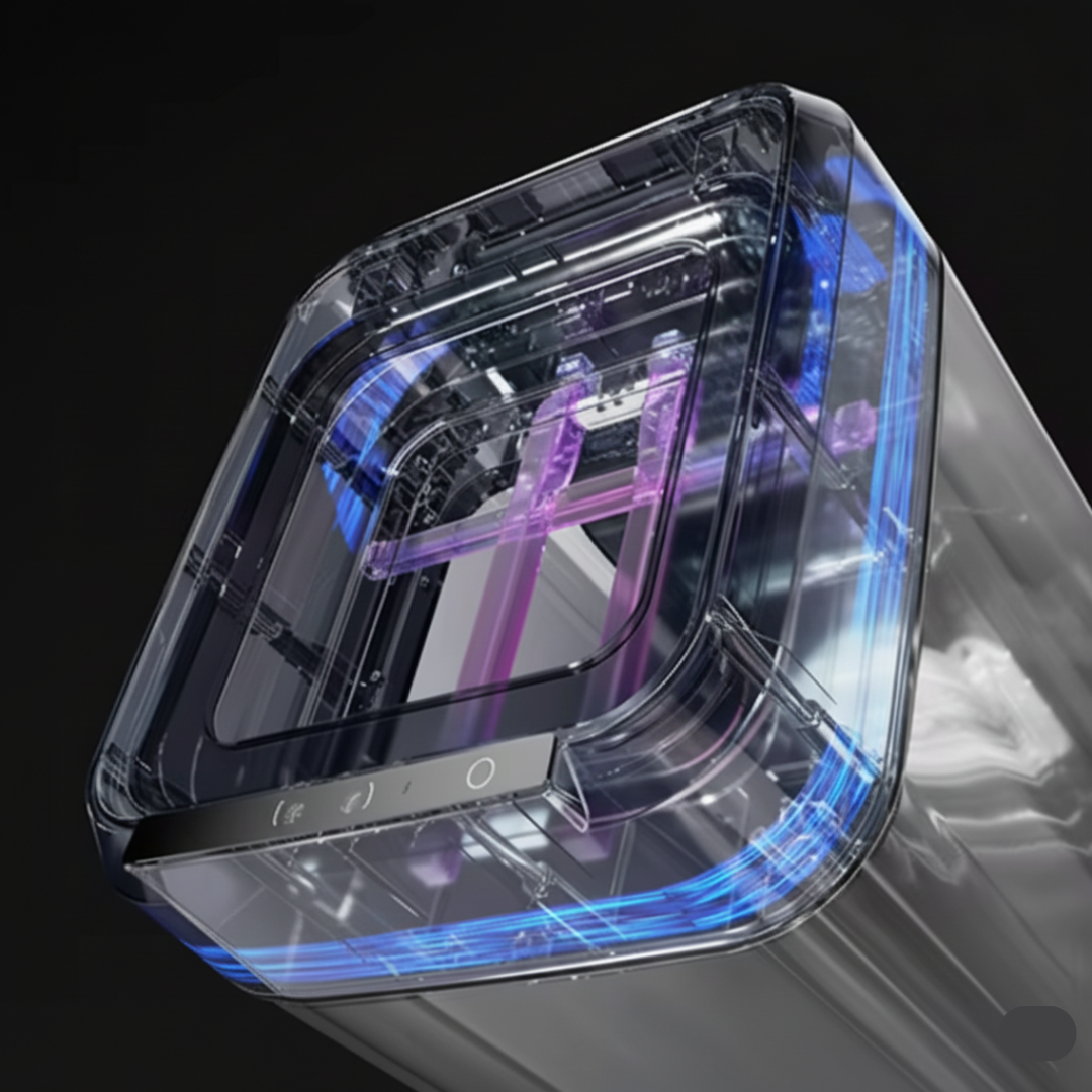 Command with a single touch. A sleek, back-lit glass panel designed for precision and poise. Tap to seal, reset, or awaken your bin — each interaction smooth, tactile, and satisfying.