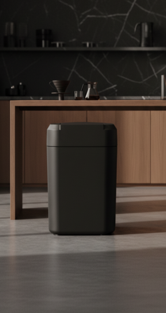 Command with a single touch. A sleek, back-lit glass panel designed for precision and poise. Tap to seal, reset, or awaken your bin — each interaction smooth, tactile, and satisfying.